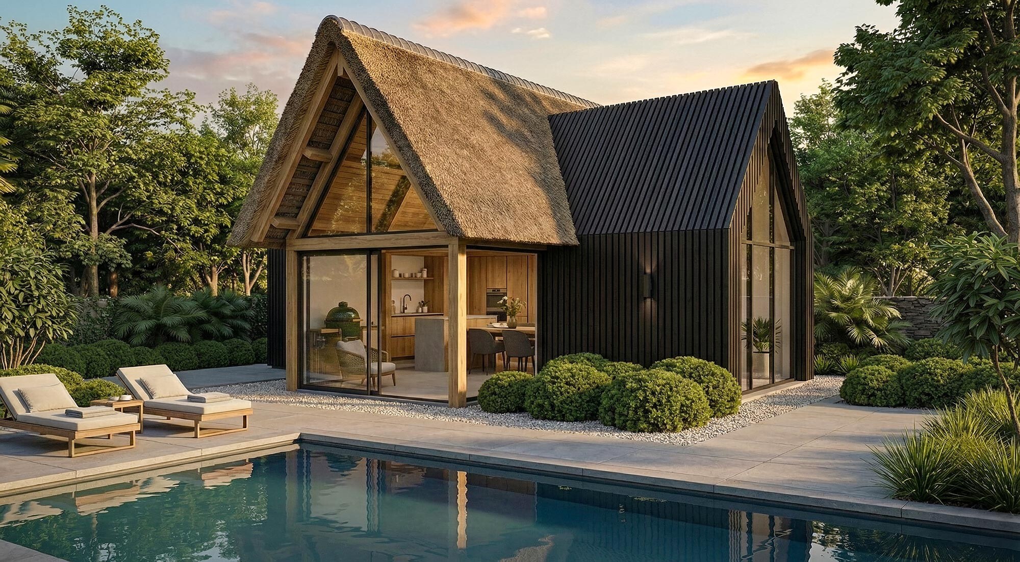 Aan het water krijgt het Buitenhuys een heel eigen invulling. De plek waar je terugkomt na een dag buiten, de pui dichtschuift en uitkijkt over het water terwijl het binnen aangenaam warm is. Ook diep in het naseizoen blijft de ruimte op temperatuur.