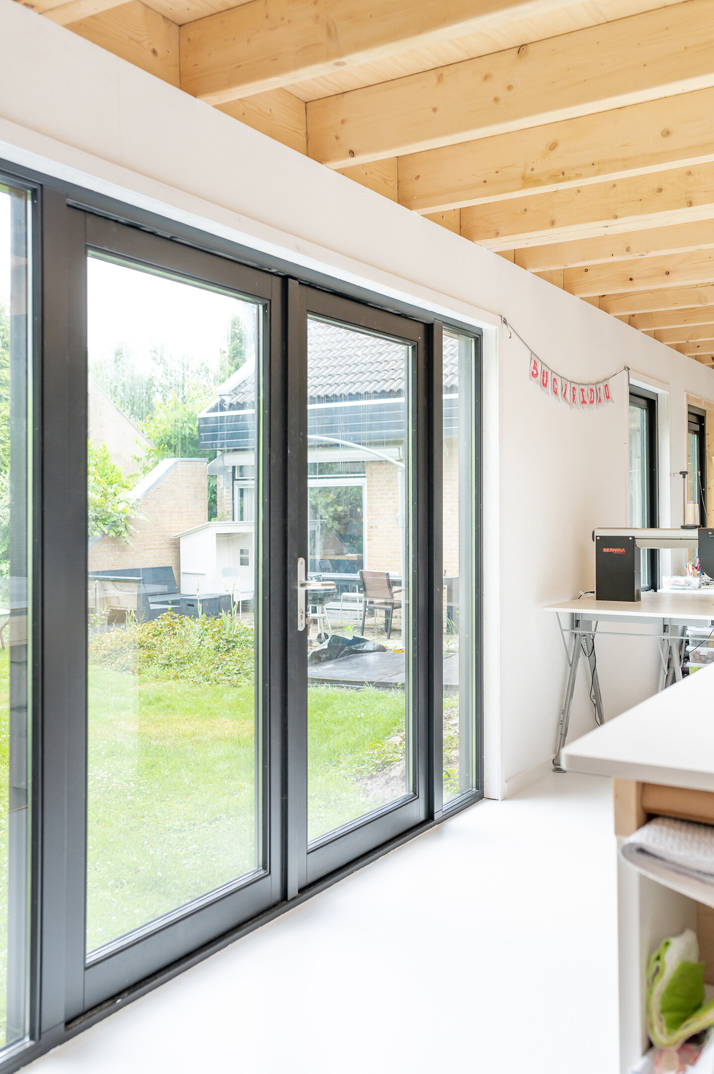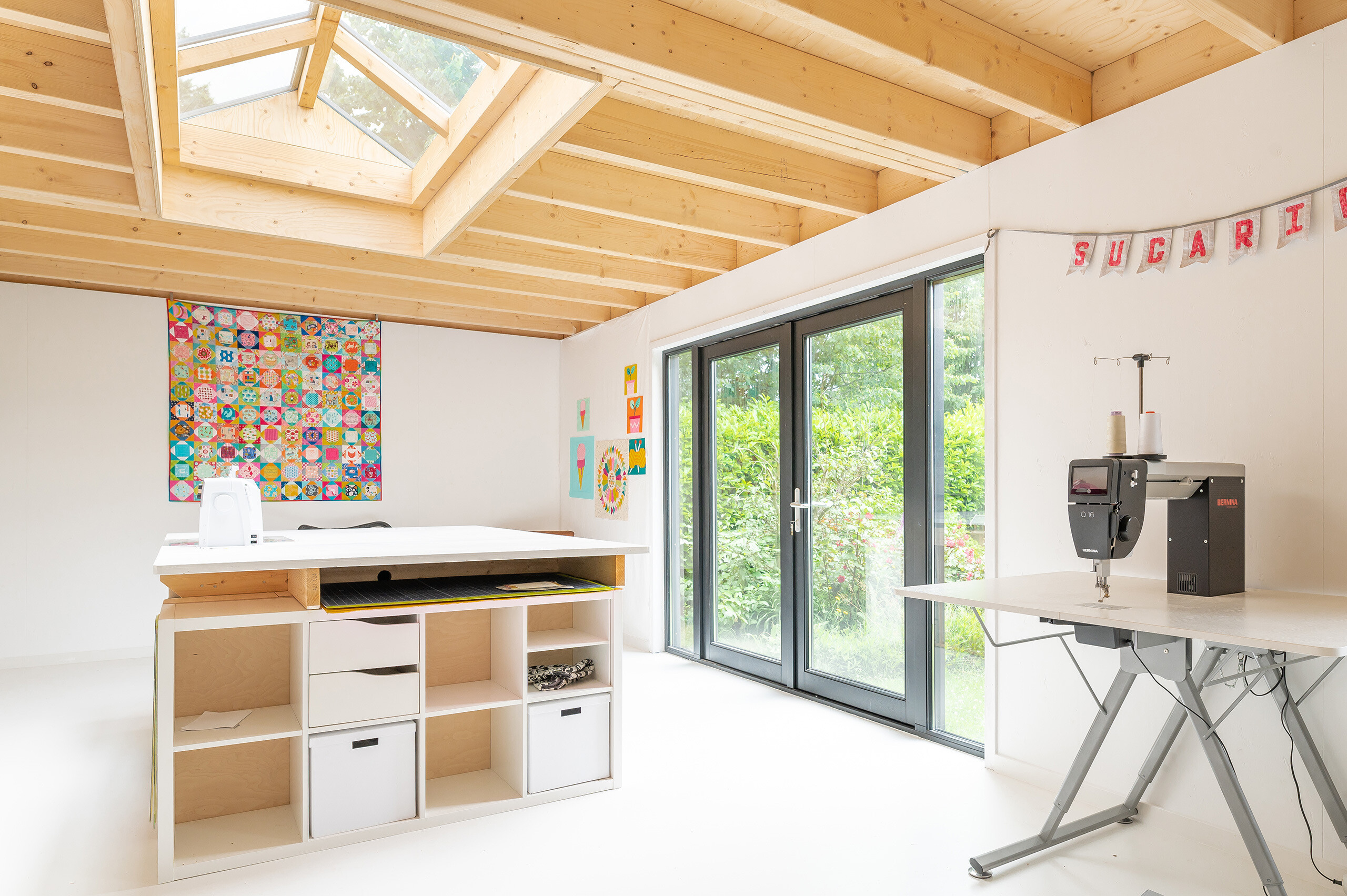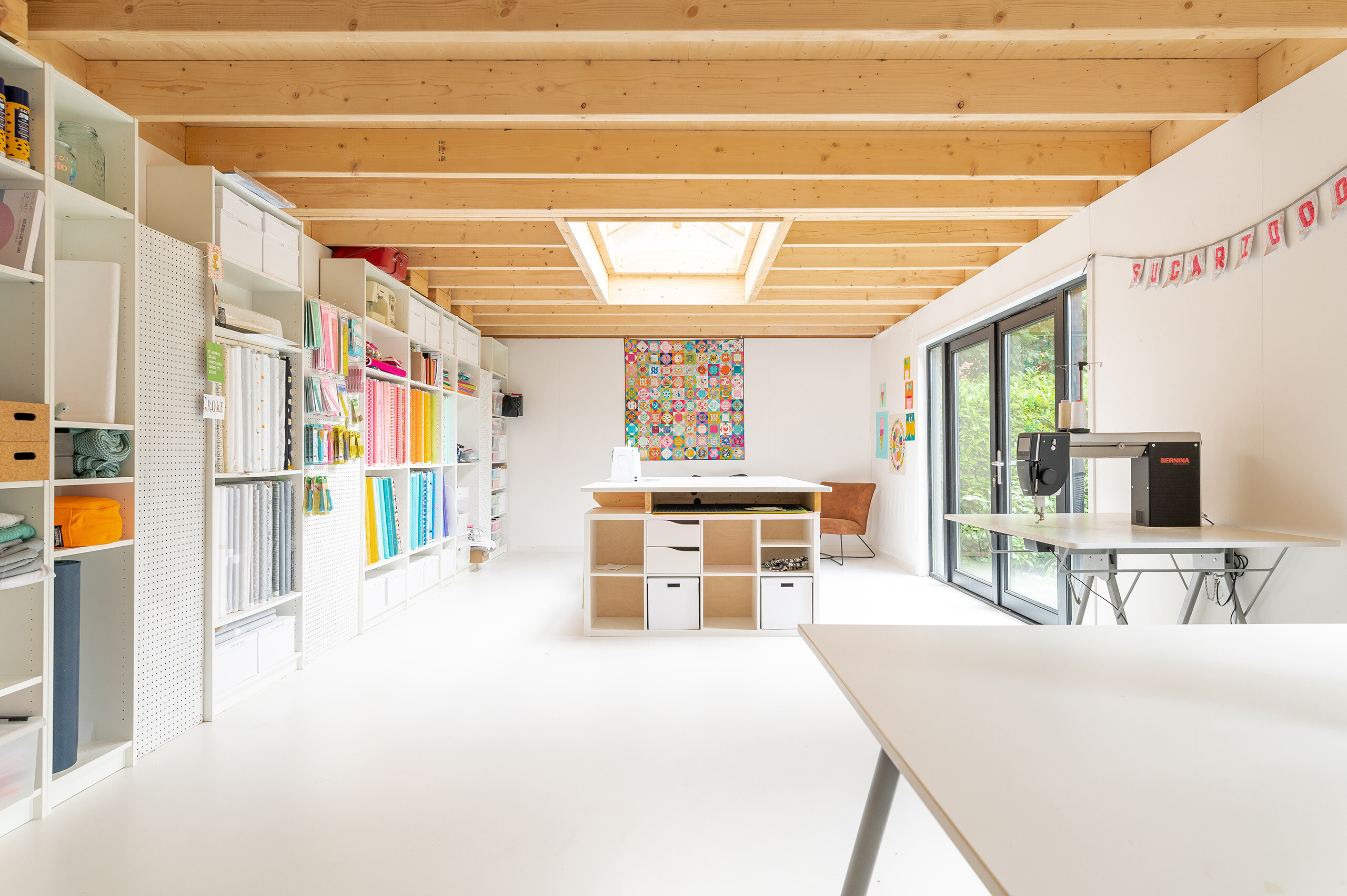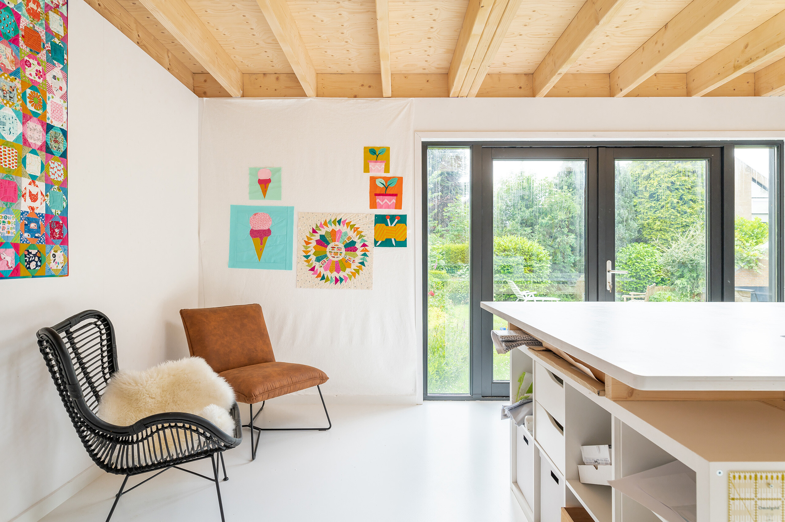 In het noorden van ons land wordt creatief gewerkt. En daar is een mooie ruimte voor gerealiseerd. Veel licht door de grote ramen en de lichtstraat in het dak zorgt voor een maximale hoeveelheid daglicht in het atelier.