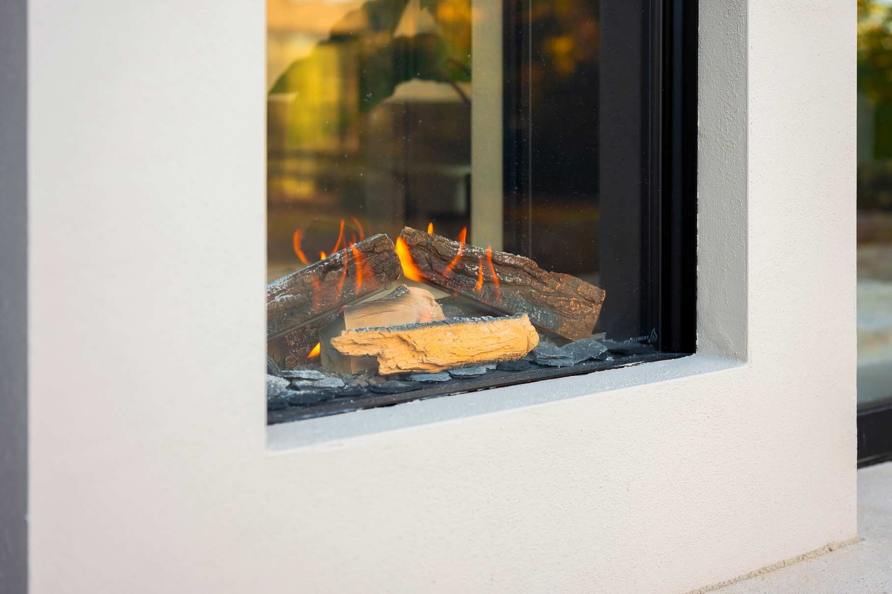 Comfort staat in dit buitenverblijf op nummer één, ongeacht het seizoen. De ruimte beschikt over een unieke en luxe combinatie van warmtebronnen. Als absolute blikvanger fungeert de tunnelhaard op gas; een doorkijkhaard die functionele warmte combineert met visuele klasse. Voor de liefhebbers van authentieke sfeer is er daarnaast een robuuste houtkachel geplaatst. Om het klimaat technisch te perfectioneren, is er een aircounit in het plafond verwerkt. Deze dient als hoofdverwarming en koeling, waardoor er in combinatie met de isolatie altijd een aangenaam binnenklimaat heerst.