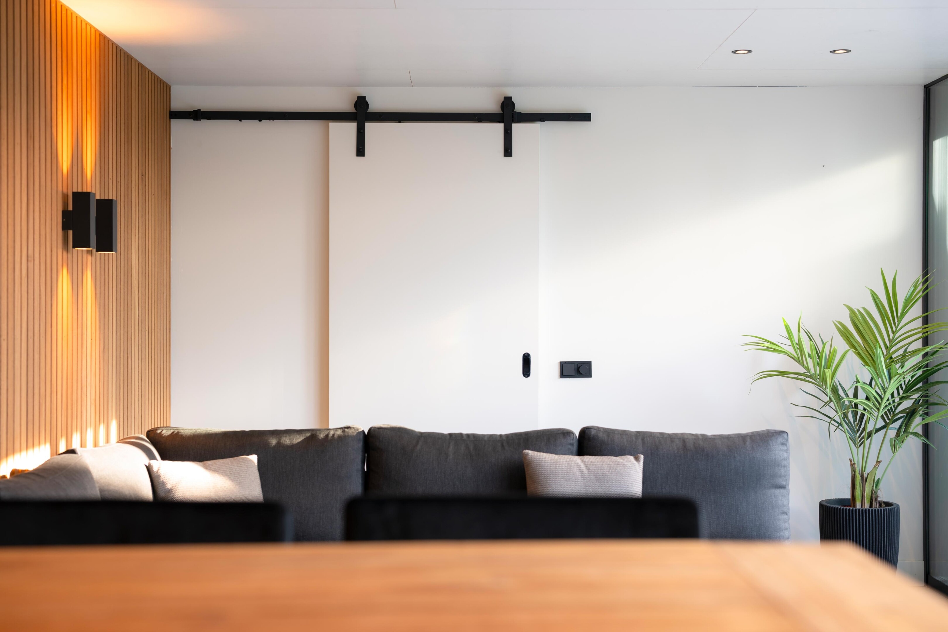 L-vormig ontwerp met warme houtafwerking