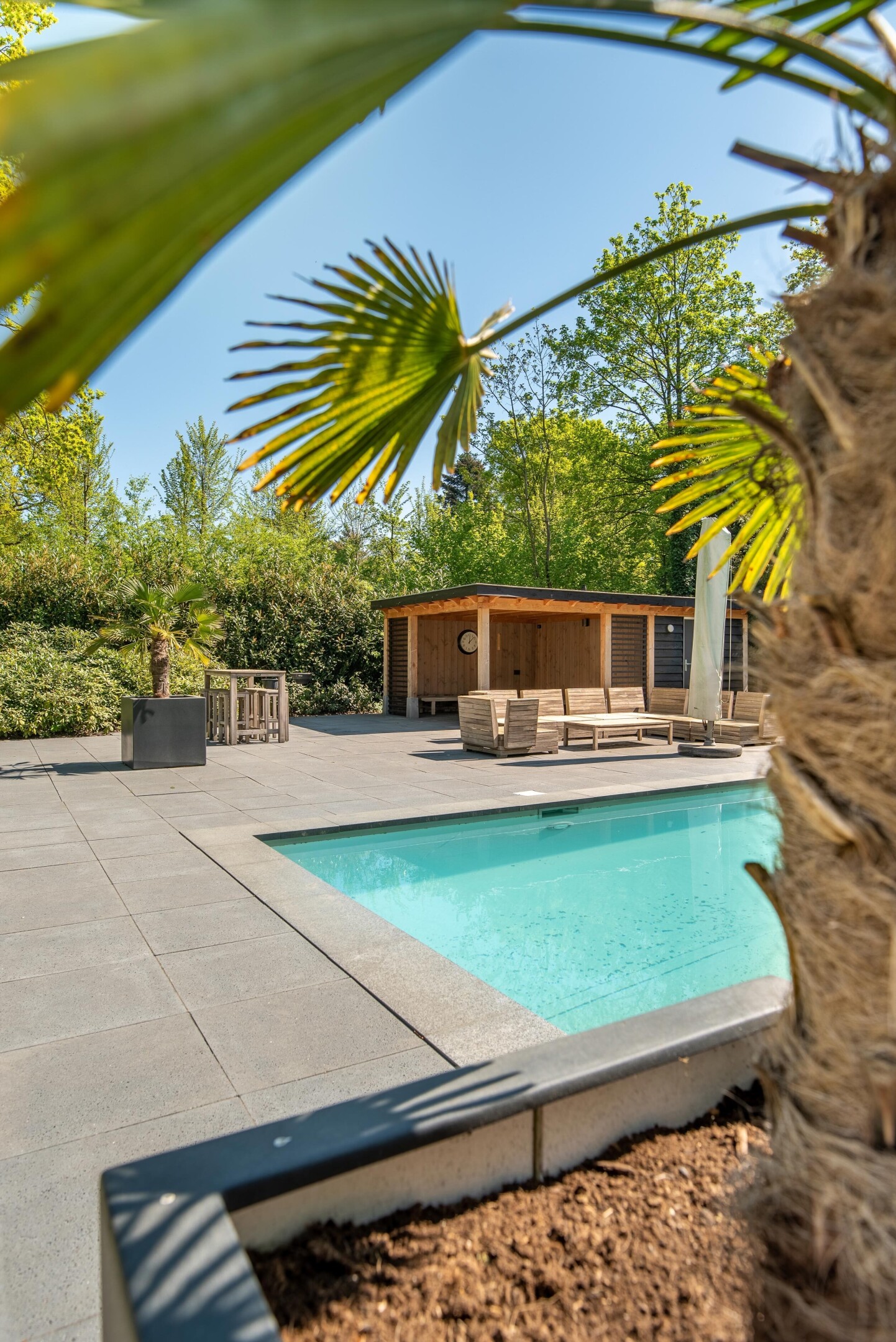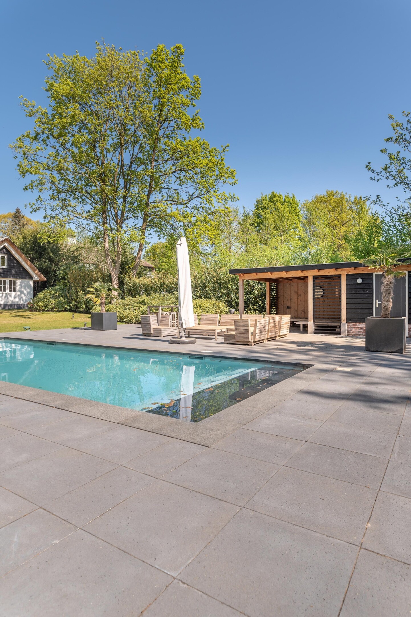 Voor een klant in Blaricum hebben we een poolhouse op maat gerealiseerd. De stevige basis bestaat uit een opgemetselde fundering en betonsokkels. De veranda is afgewerkt met grijze delen, wat zorgt voor een warme uitstraling.