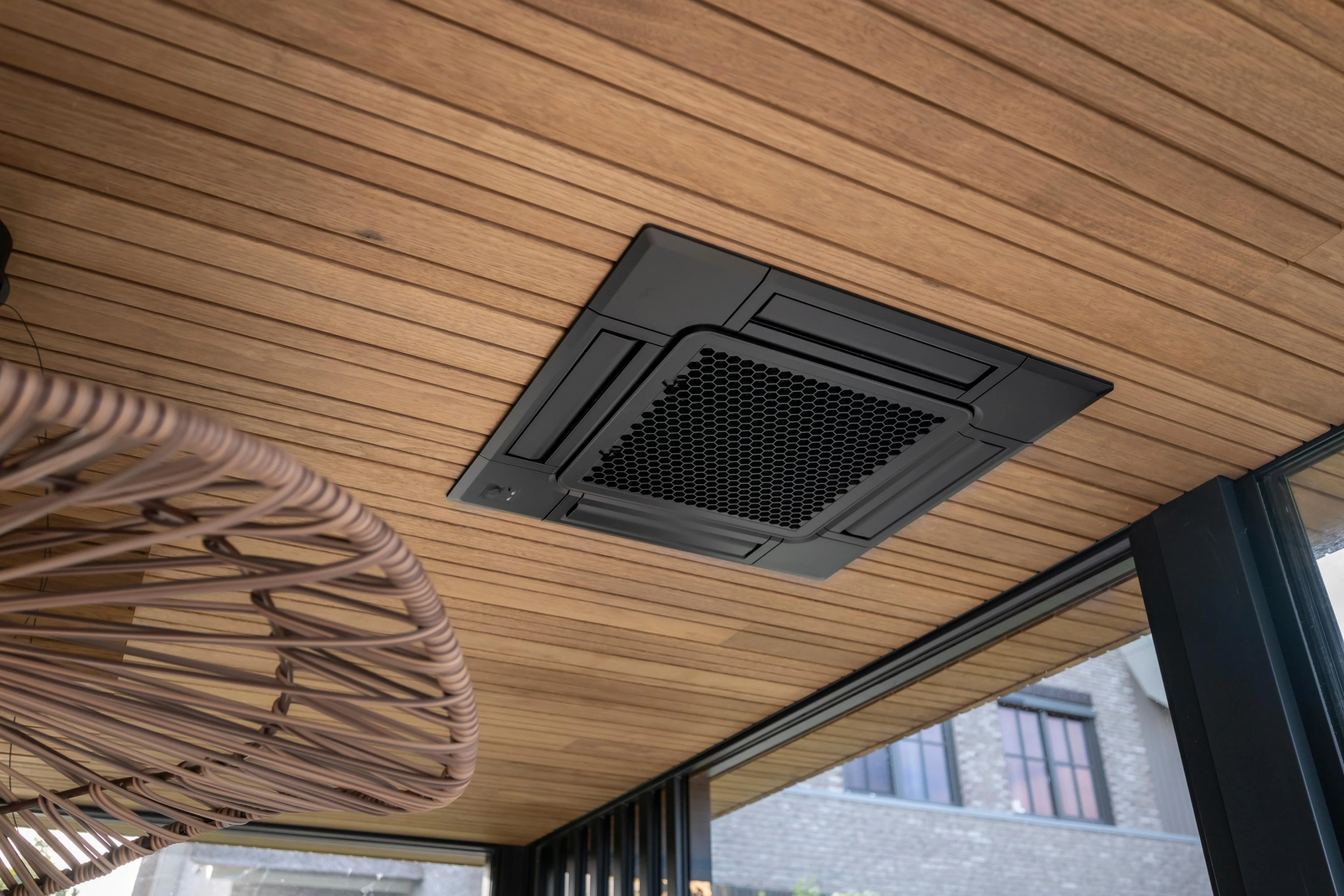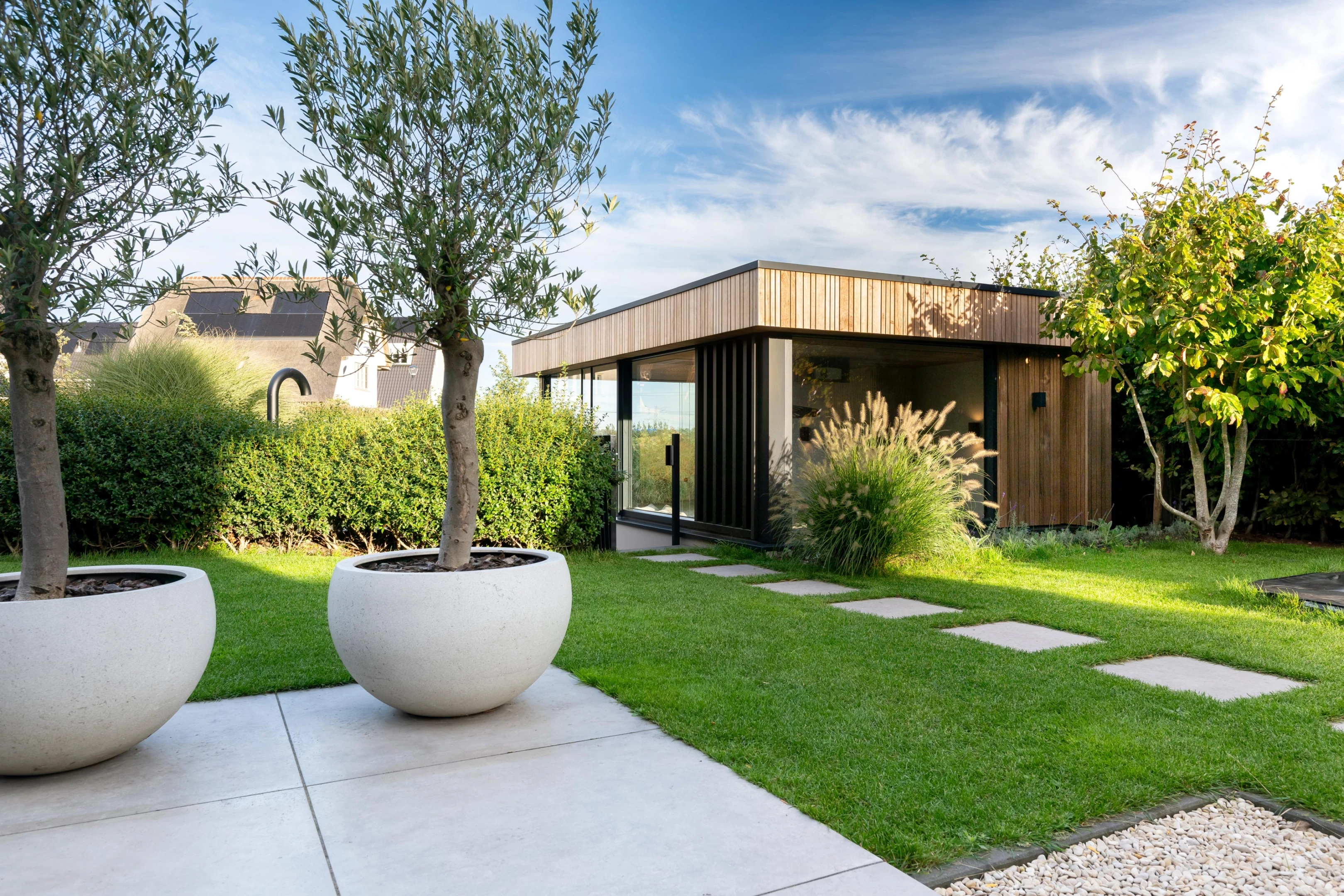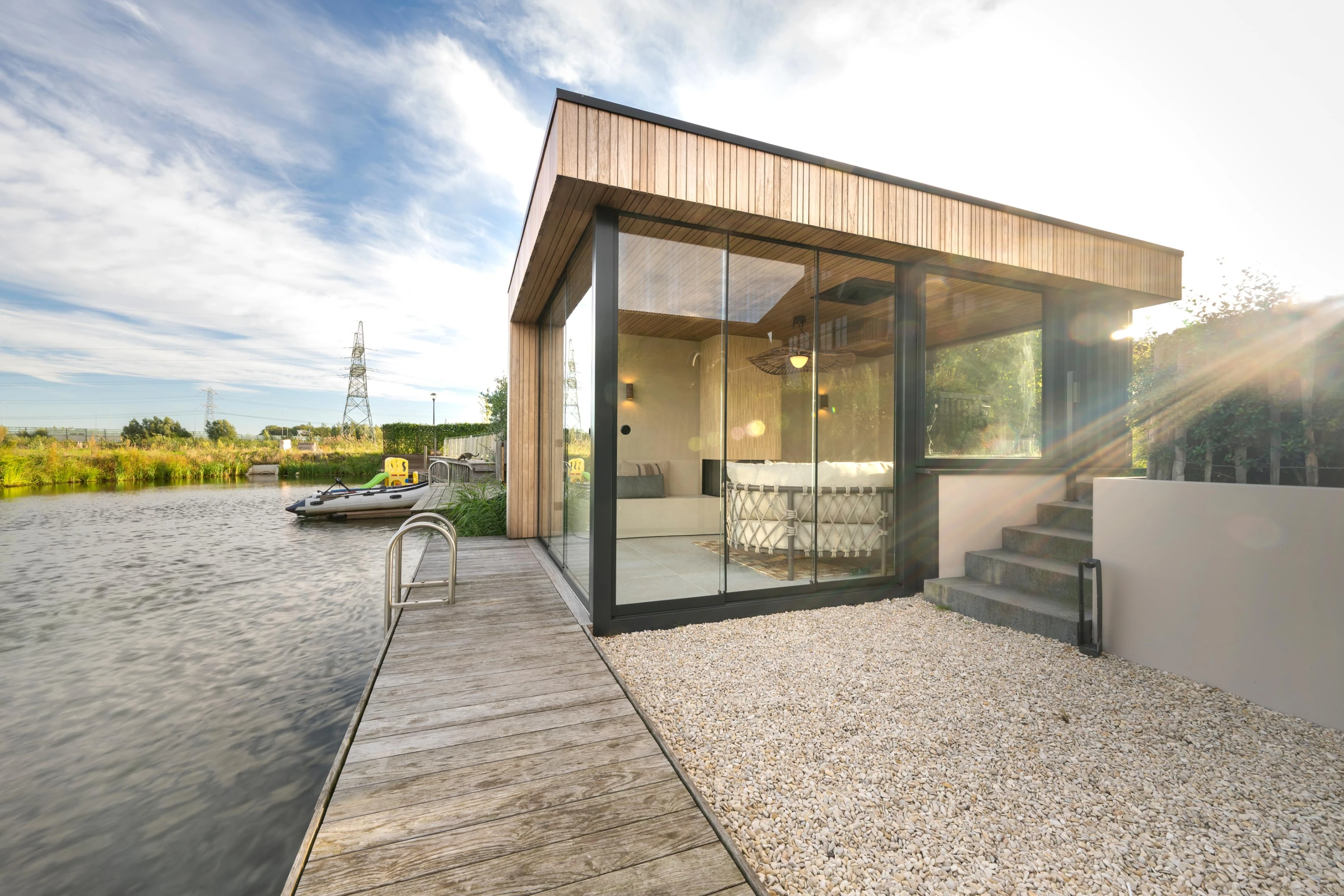 De constructie rust op funderingspalen, goed voor een lange levensduur. De wanden en het dak zijn volledig geïsoleerd, zodat het binnen het hele jaar door behaaglijk blijft. De airco, zonwering en beamer zijn weggewerkt in het plafond. “Alles wat techniek is, verdwijnt in de constructie,” zegt Frank. “Wat overblijft, is rust en gebruiksgemak.”