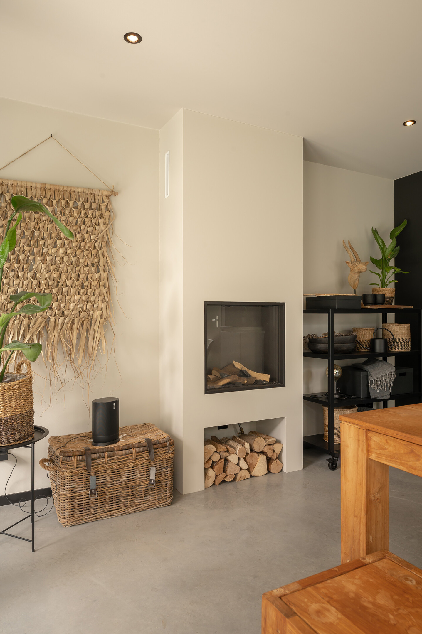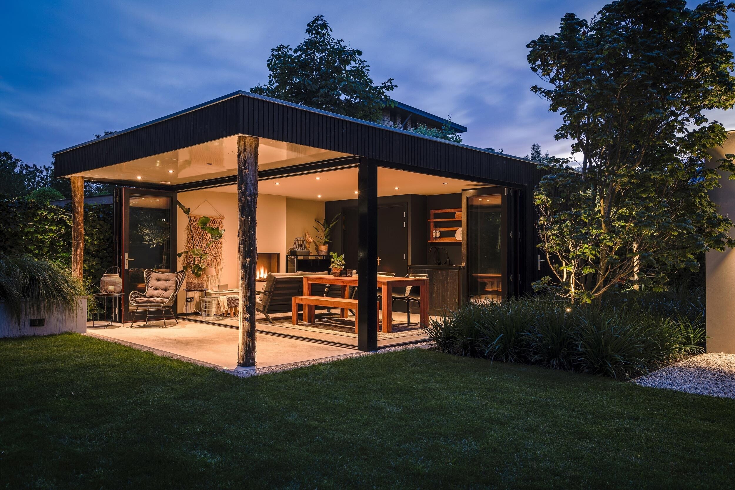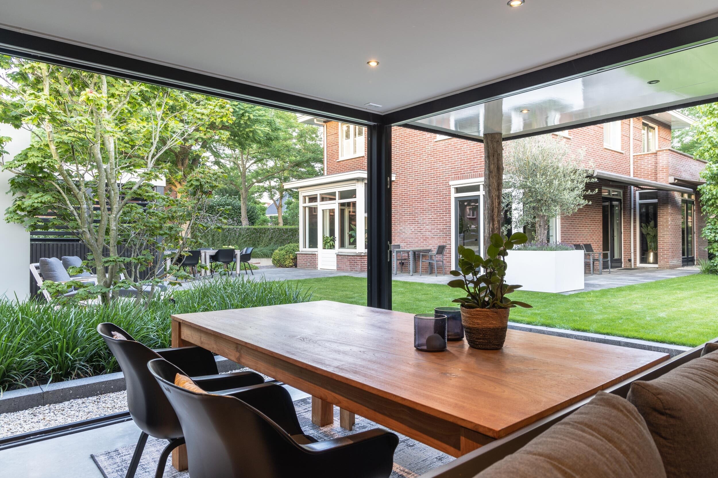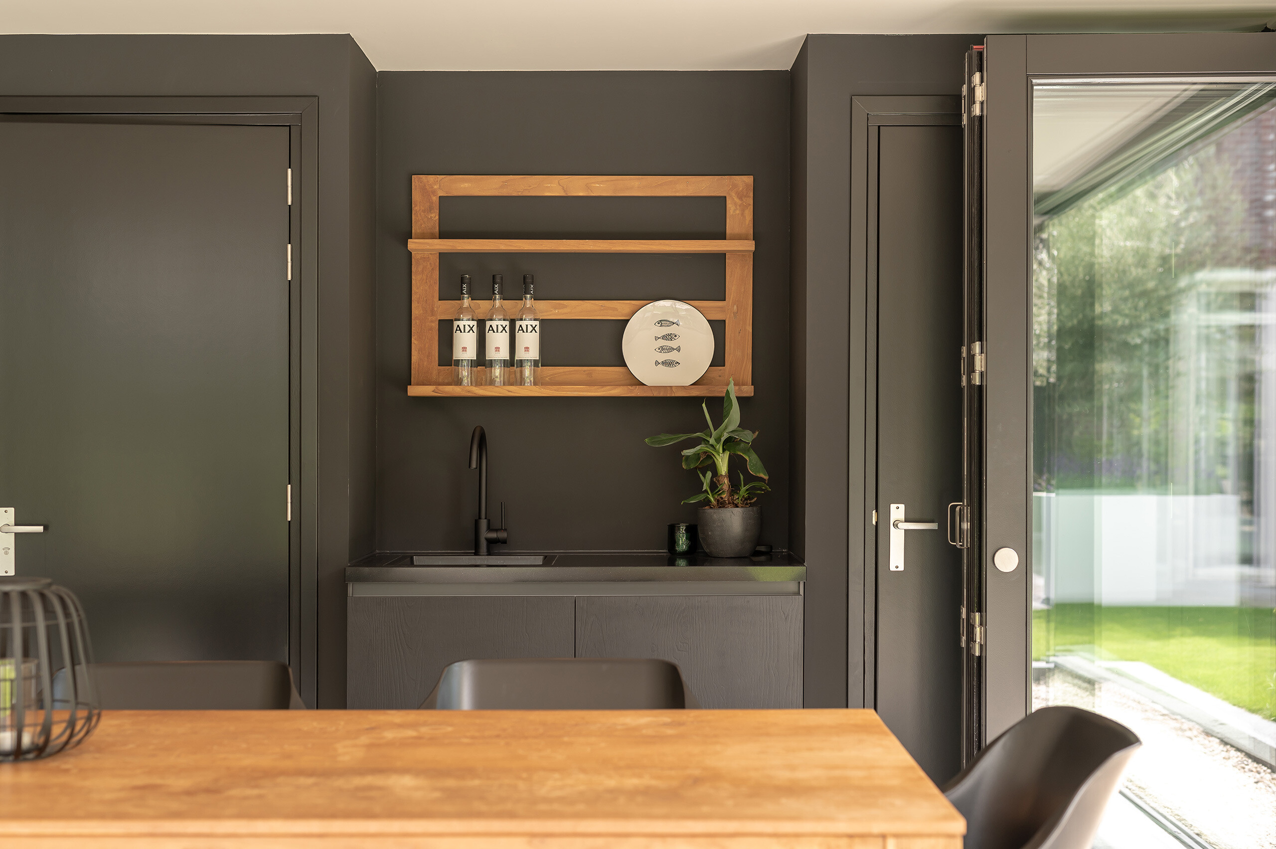 Wat misschien wel het meest opvalt is de vouwwand. De glazen pui is namelijk volledig vouwbaar zodat je het per seizoen, per dag, per moment kan aanpassen. Het glas heeft ook een hoge isolatiewaarde waardoor je er in de winter ook heerlijk kan zitten met de kachel aan.