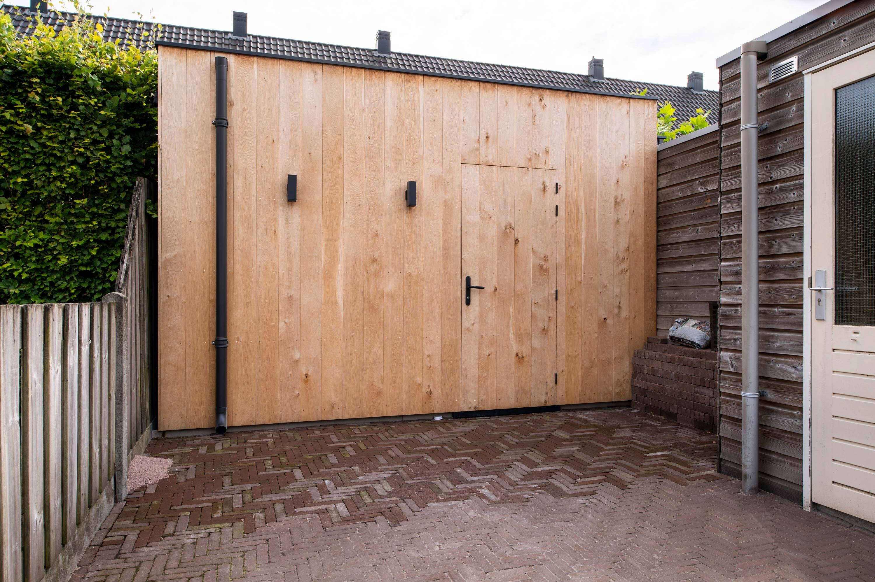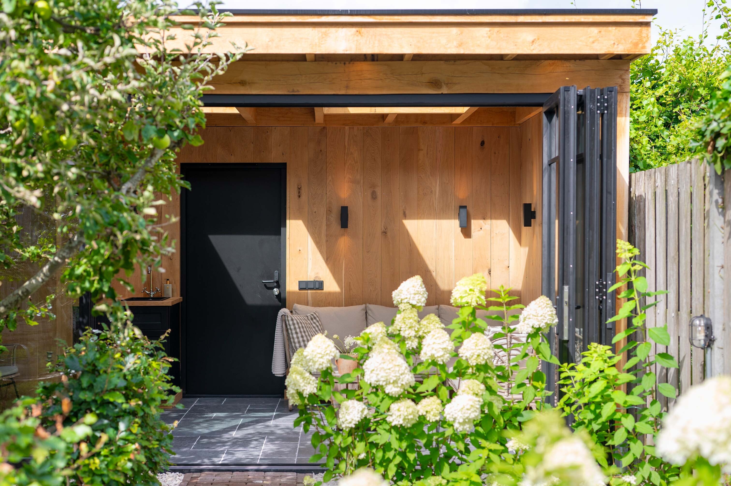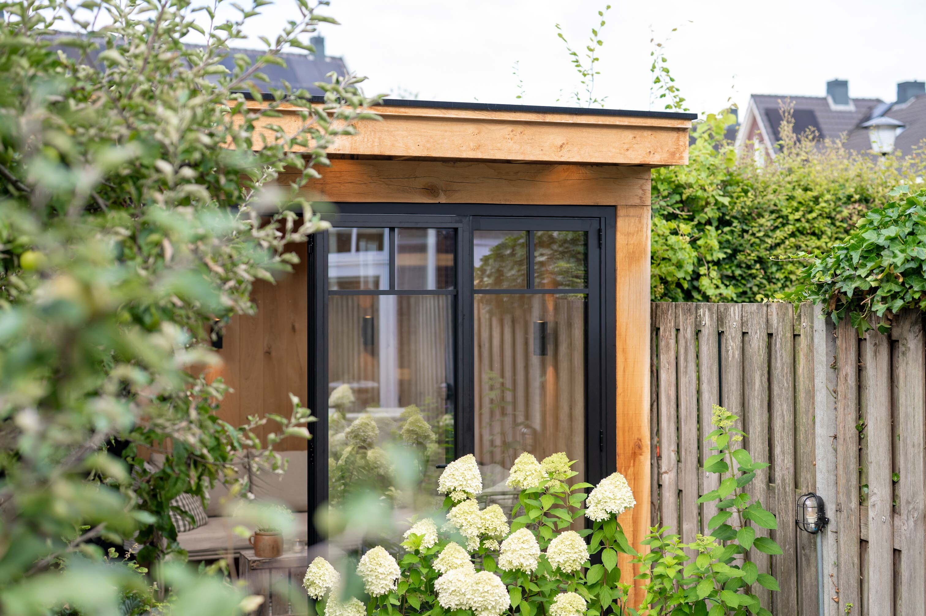 In een compacte tuin in Harderwijk is een buitenkamer gerealiseerd die helemaal uit eikenhout is opgebouwd. De wens van de klant was duidelijk: een tweede woonkamer in de tuin, met een warme en natuurlijke uitstraling. Het resultaat is een plek waar het gezin zich kan terugtrekken, samen kan eten of de kinderen even hun eigen ruimte hebben. Door het gebruik van massief eiken straalt de tuinkamer karakter en duurzaamheid uit, passend bij de groene omgeving.